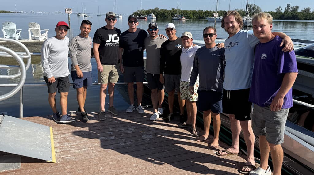Blake and Brock Gratton brought their friend, Kyle Sylvestra, along for the Friday lunch run on their 38-foot Doug Wright catamaran built out by Manatee Marine Unlimited.