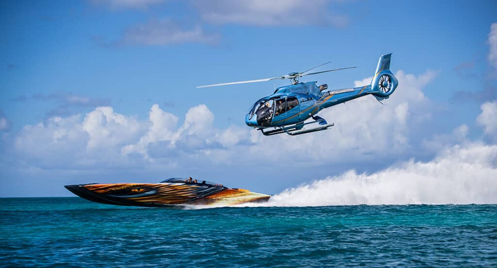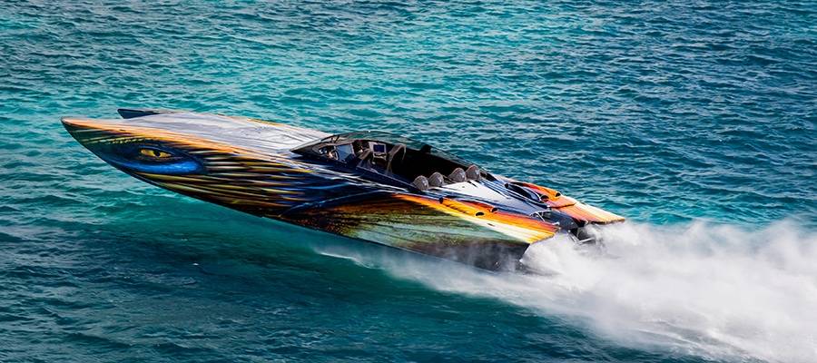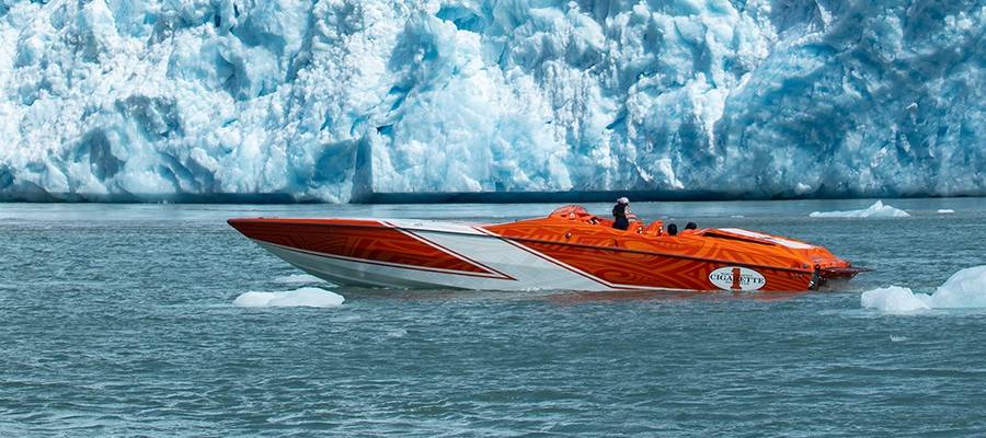 Though Pavkovich and his team have customized several boats including a 50-foot Nor-Tech center console, a Cigarette Racing Team 42X and a couple of Skater Powerboats catamaran for Fertitta, the Cigarette captured public attention when it was completed in 2020. As it happened, Fertitta had a trip to Alaska—and later to Tahiti—when the 42-footer dubbed Drogon and painted by Visual Imagination was finished. So he took it with him.