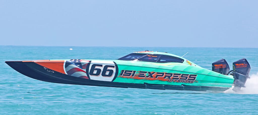 The two sides agreed over the phone that Morgan and Imprescia would be paid because they wanted to be responsible for their jobs. “Jorge said, ‘I wouldn’t have it any other way,’” said Imprescia. The team met for a weekend to see how everybody got along and the next thing they knew, Imprescia and Morgan made their debuts in a 32-foot Phantom in the Mod-V class called 151 Express, in Michigan City, Ind., in 2022.