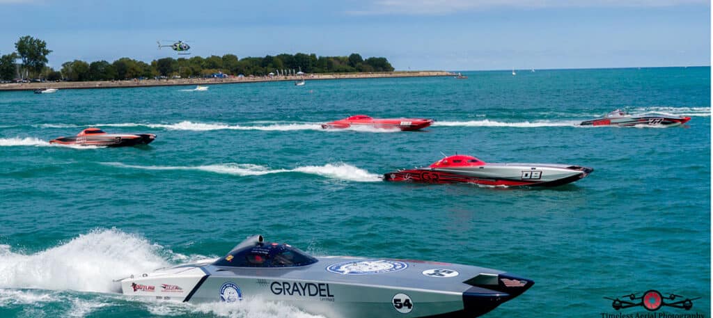 At the RWO Chicago National Grand Prix, the XINSURANCE South and Dirty Money teams continued to dominate the Pro Class 1 and Super Cat categories. Photos by Timeless Aerial Photography copyright Race World Offshore.