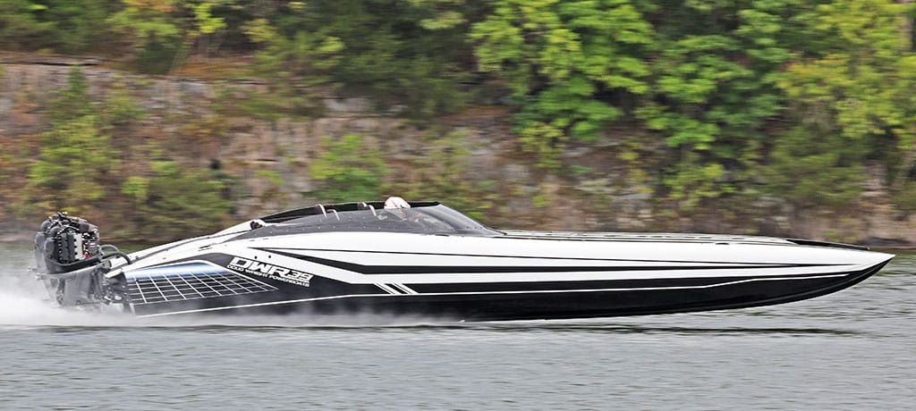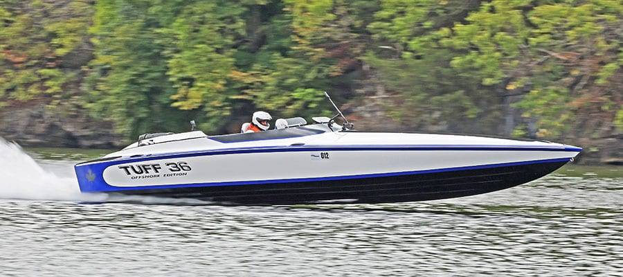 Thomas Weigl also made one pass in a customer’s single-engine Tuff Marine 36 V-bottom and recorded a top speed of 120 mph in the 36-footer, which he felt was good but could have been faster.