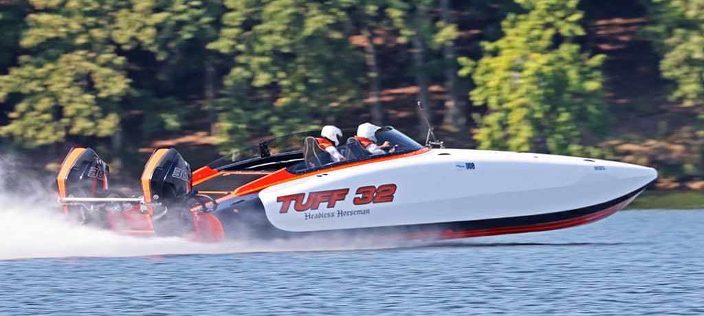 Between its 121-mph run on Saturday and the amount of attention the Tuff 32 Headless Horseman received at Wednesday’s Shootout on the Strip, the very first catamaran from Tuff Marine enjoyed quite a debut at the Lake of the Ozarks Shootout.