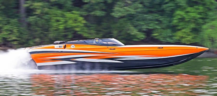 After those two Skaters, there were several MTIs, Mystics, DCBs and other Skaters that topped 140 and 150 mph on the three-quarter-mile course. Travis Oliver’s 48-foot MTI, Shake And Bake, sits at 161 mph along with a couple of DCBs, an M31 driven by company vice president (and Shootout Hall of Famer) Tony Chiaramonte and an M35 driven by customer Hobie Jarrard.