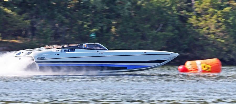 MTI founder Randy Scism was joined for the first pass on the new Shootout course by Missouri Lieutenant Governor David Wasinger in a new MTI 390X powered by twin Mercury Racing 500R engines.