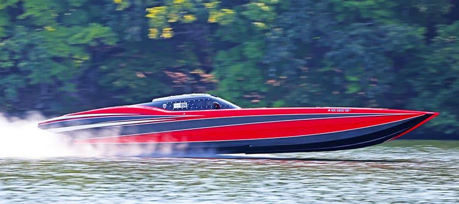 What started with the historic 125-mph Lieutenant Governor Inaugural Run—featuring MTI founder Randy Scism on the throttles of a new MTI 390X catamaran and Missouri Lieutenant Governor David Wasinger steering the 39-footer—on the brand new Lake of the Ozarks Shootout course to kick off the 37th annual event that moved to Grand Glaize Arm & Dog Days Bar & Grill in Osage Beach, Mo., ended with some extraordinary highlights not to mention several disappointing outcomes for the teams that traveled from across the country to compete in the two-day top-speed contest that concludes Sunday.