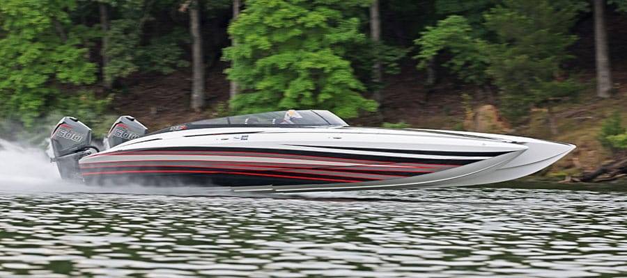 “That was a very good run; we thought the boat had the speed in it thanks to all of the adjustments Carson made to the motors, but you never know what will happen,” said Williams, the salesman and delivery captain for Performance Boat Center who has built quite an impressive boat racing resumé in the past decade. “We went with the bigger wheels this morning, expecting the boat would be able to pull them and apparently it can. Those engines are so amazing, and the Skater hull is remarkable at that speed.”