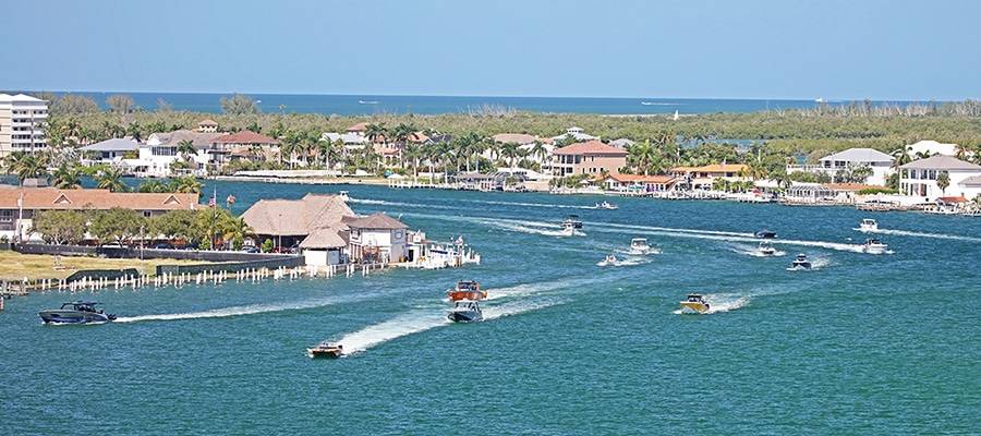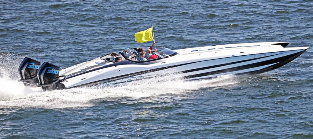 Until yesterday, it had been four years since Fort Myers Offshore had visited Marco Island, Fla., which as it happens is the second home of Bob Barnhart, who founded the club in 2005. The 40-boat group, a fleet-size the soft-spoken Canadian admits he couldn’t have dreamed of when he started the nonprofit scholarship fundraising organization, left its traditional Sanibel Island Bridge starting point at its traditional 11 a.m. departure time.