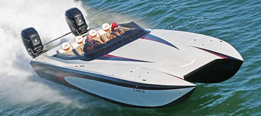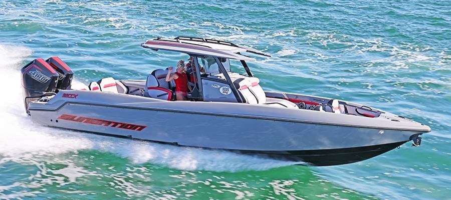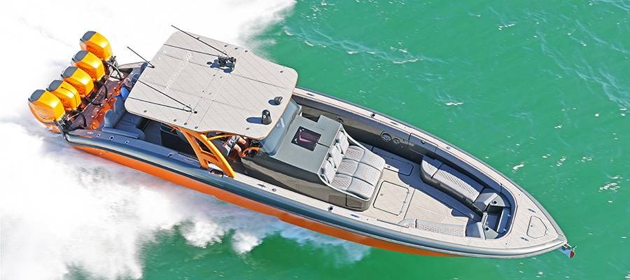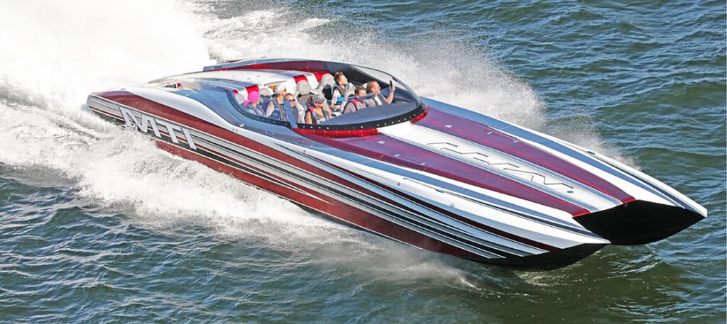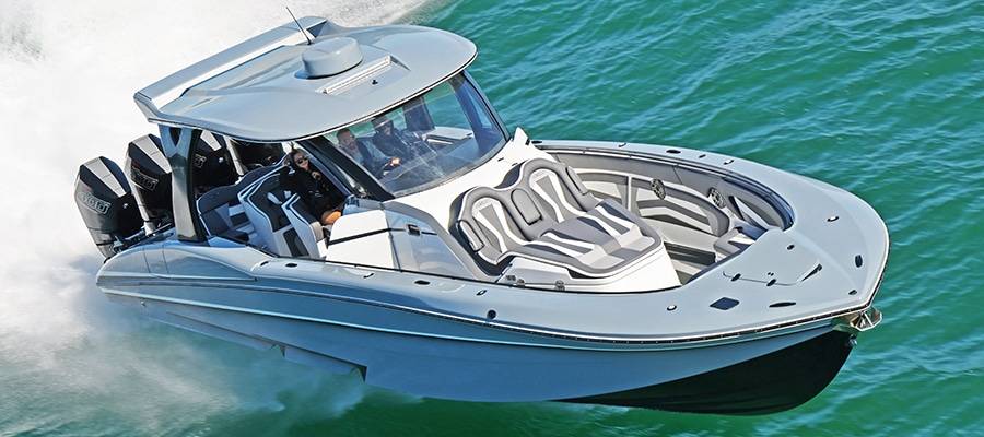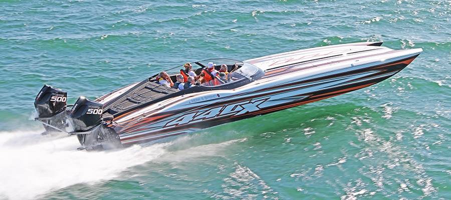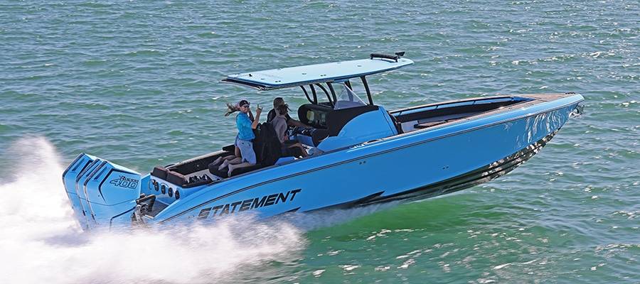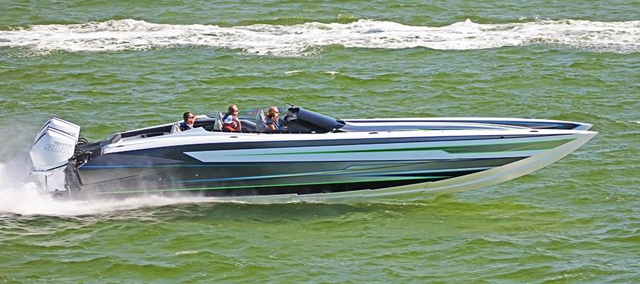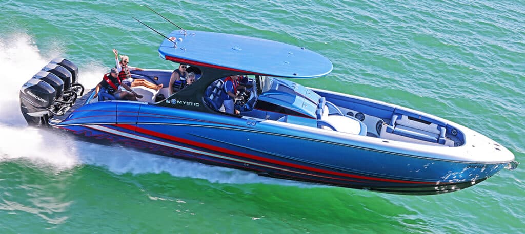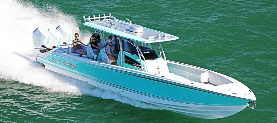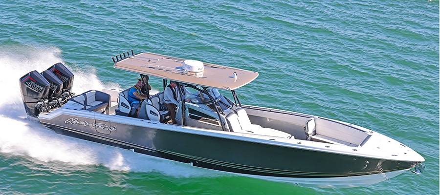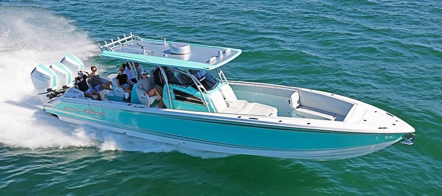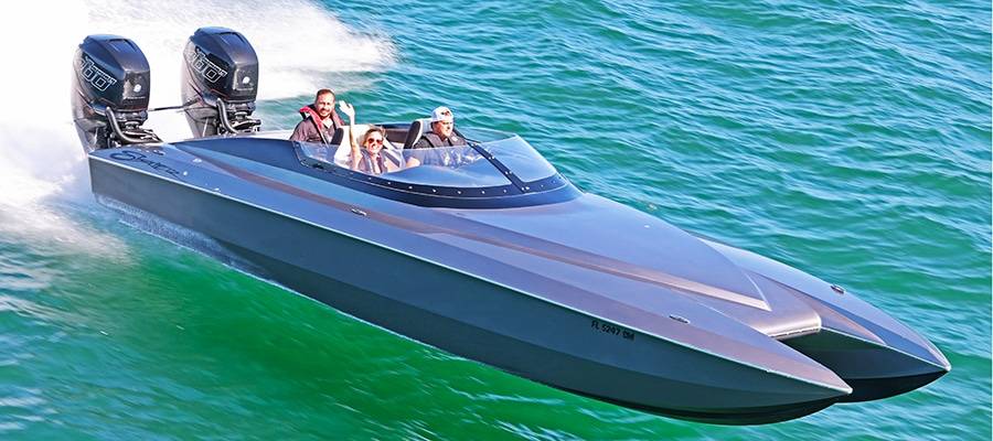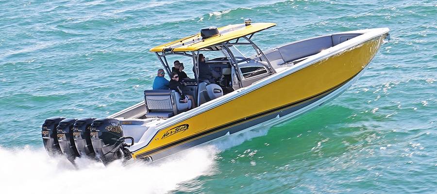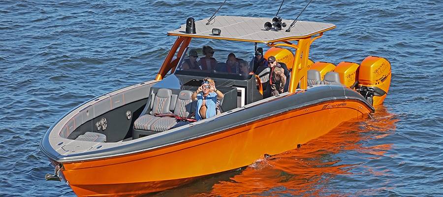 Along the lines of “credit,” new club member Tim Freund deserves a bunch for getting the Hills and their friends/weekend guests Ryan McClaran and Elizabeth Higgins to the Marco Island destination. The Hills and company had planned to tackle the run in McClaran’s Sunsation 32 CCX center console, but a mechanical issue left them boat-less. So Freund invited the group to join in his 48-foot MTI catamaran with 2,700-hp-worth of Mercury Racing engine power.