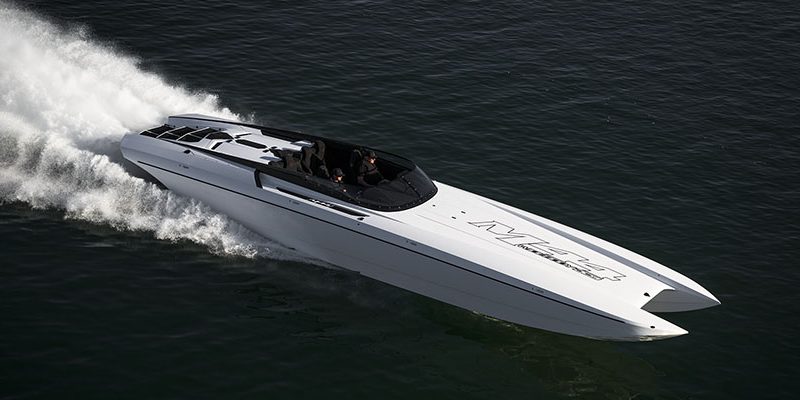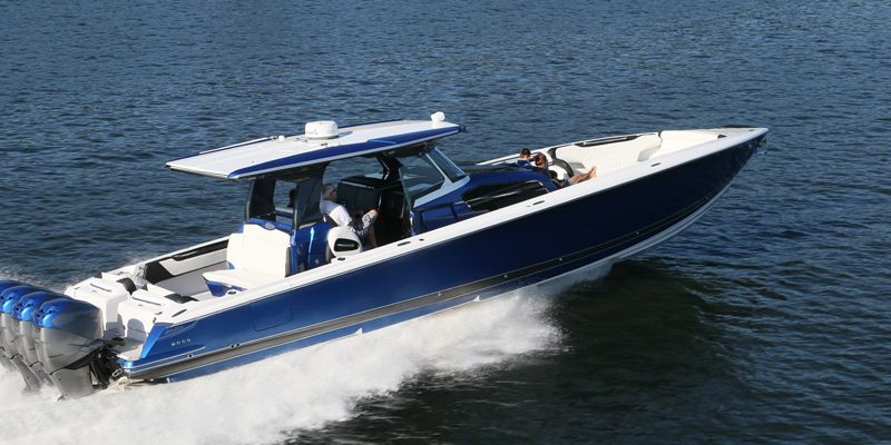 Had it not been for his persuasive wife, Heather, Tennessee’s Chad Collier likely would have joined his own Old Hickory Fun Run, Raft-Up and Pub Crawl this summer in a Mystic Powerboats M4200 luxury center console with 1,600 hp worth of outboard engines rather than stealing the show in a new low-profile Mystic C4400 catamaran powered by 2,700-hp worth of Mercury Racing quad overhead cam turbocharged stern drive power. Last March, the Colliers, who formerly owned a Mystic C5000 cat, headed to Florida for the Palm Beach International Boat Show to hang out with Mystic principal John Cosker and Scott Sjogren of Mystic Powerboat Sales and do a little boating, maybe even buy a boat.