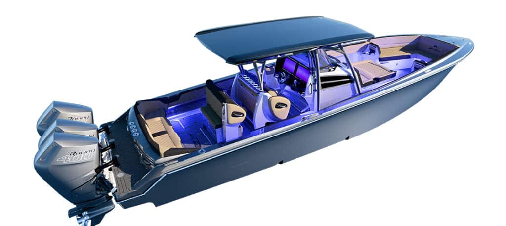Jordan worked closely with Nor-Tech’s Kevin Lane to come up with an elegant color scheme for this new 39-footer.
