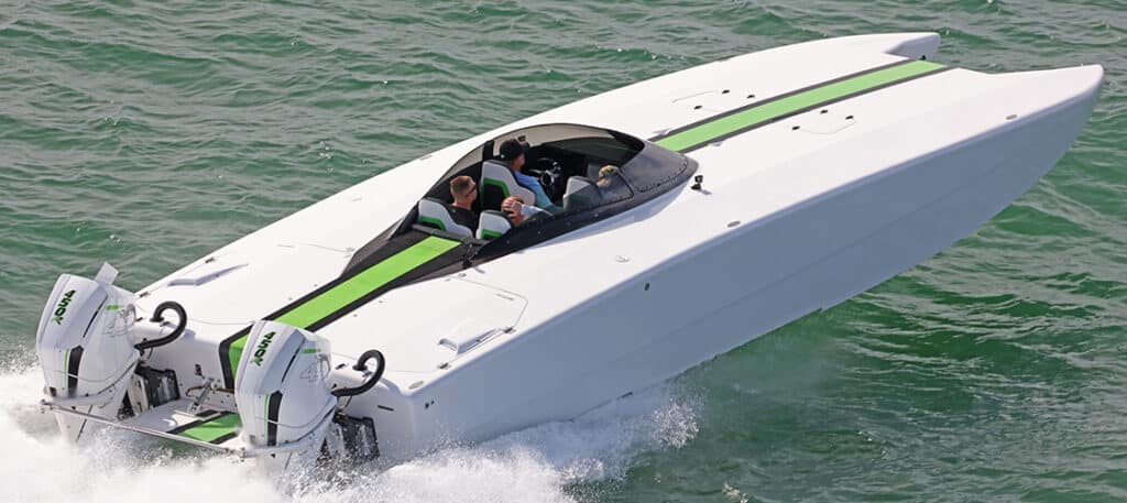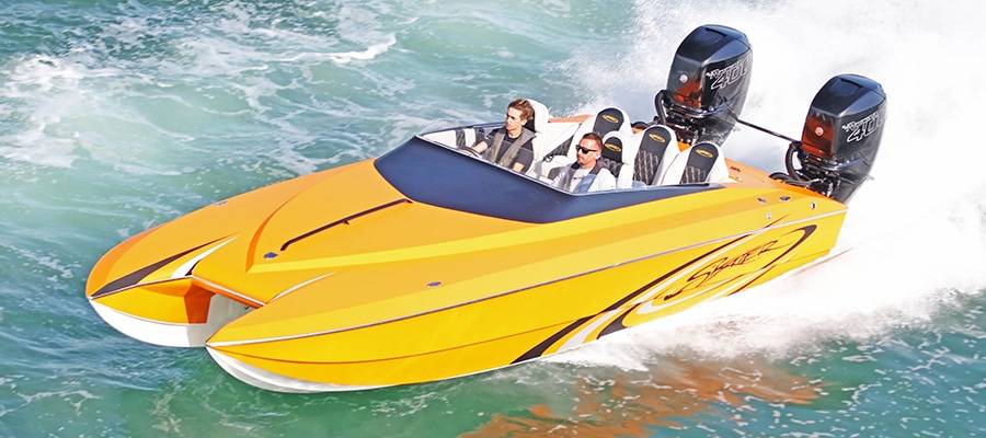 As so it should come as no surprise that, while he prefers the two-strokes of old, Hledin loves outboard engines for their simplicity. Plus, when he started crafting custom high-performance catamarans 50 years ago they all had outboard power.