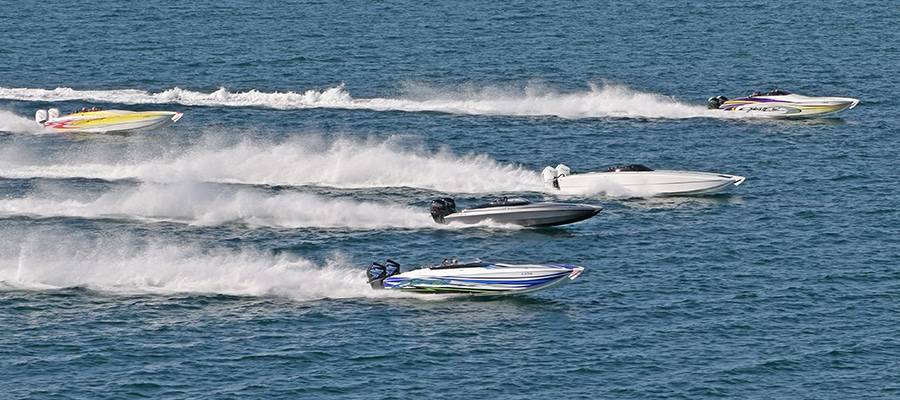 The event started Friday with a lunch run to Doc Fords Rum Bar and Grill in St. Petersburg and finished with a Saturday lunch to Riviera Dunes Dockside Social Bar and Grill in Palmetto. Thanks to a helicopter sponsored by Skater Powerboats and Wozencraft Insurance Agency carrying speedonthewater.com chief photographer Pete Boden and videographer Matthew Hledin (Peter’s nephew) of Circus Media House, the action from both days on the water was well-covered.