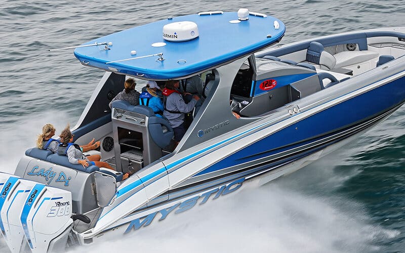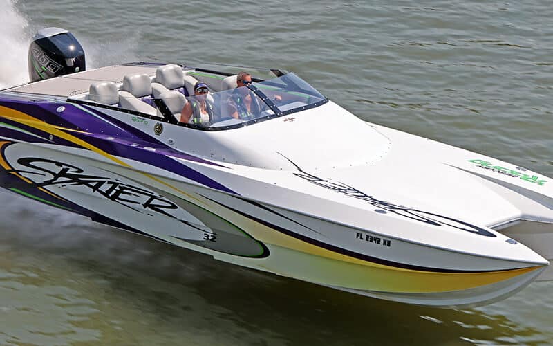 And though it doesn’t fall into the same “big-power” category with its Mercury Racing 700SCi engines, as previously reported on speedonthewater.com a Skater 368 called Fair Chase is next in line for the Skater paint booth when the company reopens.