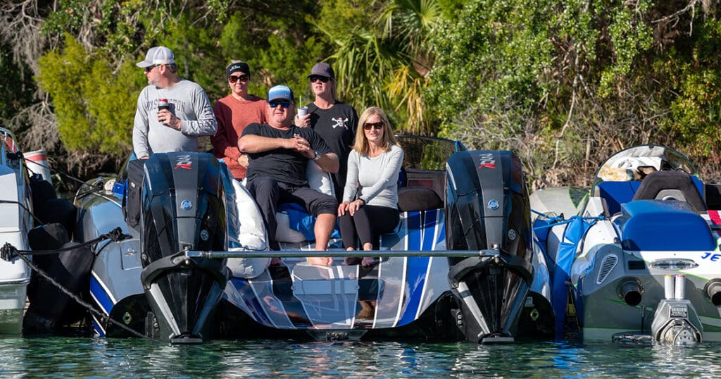 In 2024, the St. Johns River affair attracted 80 to 90 boats according to McCormick. Many of them were multi-time Toy Tour participants, such as Chad Shutter of BRP Marine Custom in Denver, N.C. Shutter’s first Toys Tour in 2014, which he ran with his brother, Corey, in a 28-foot Skater catamaran.