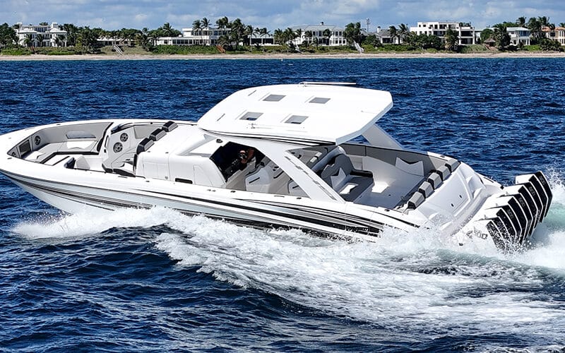 Since he founded Angle Of Attack Marine located in Miami Beach Marina, Mystic Powerboats dealer Chris Richards had a clear vision for building a new audience for the DeLand, Fla., center-console and catamaran builder. Richards owned a Mystic M5200 center console, C4400 catamaran and a C4000 catamaran before he became a dealer. He loved how the boats performed. He loved their elegant lines. But he wanted to take styling and—frankly—attitude to a more aggressive level, one that appeals to buyers with his own fashion-forward sensibilities.